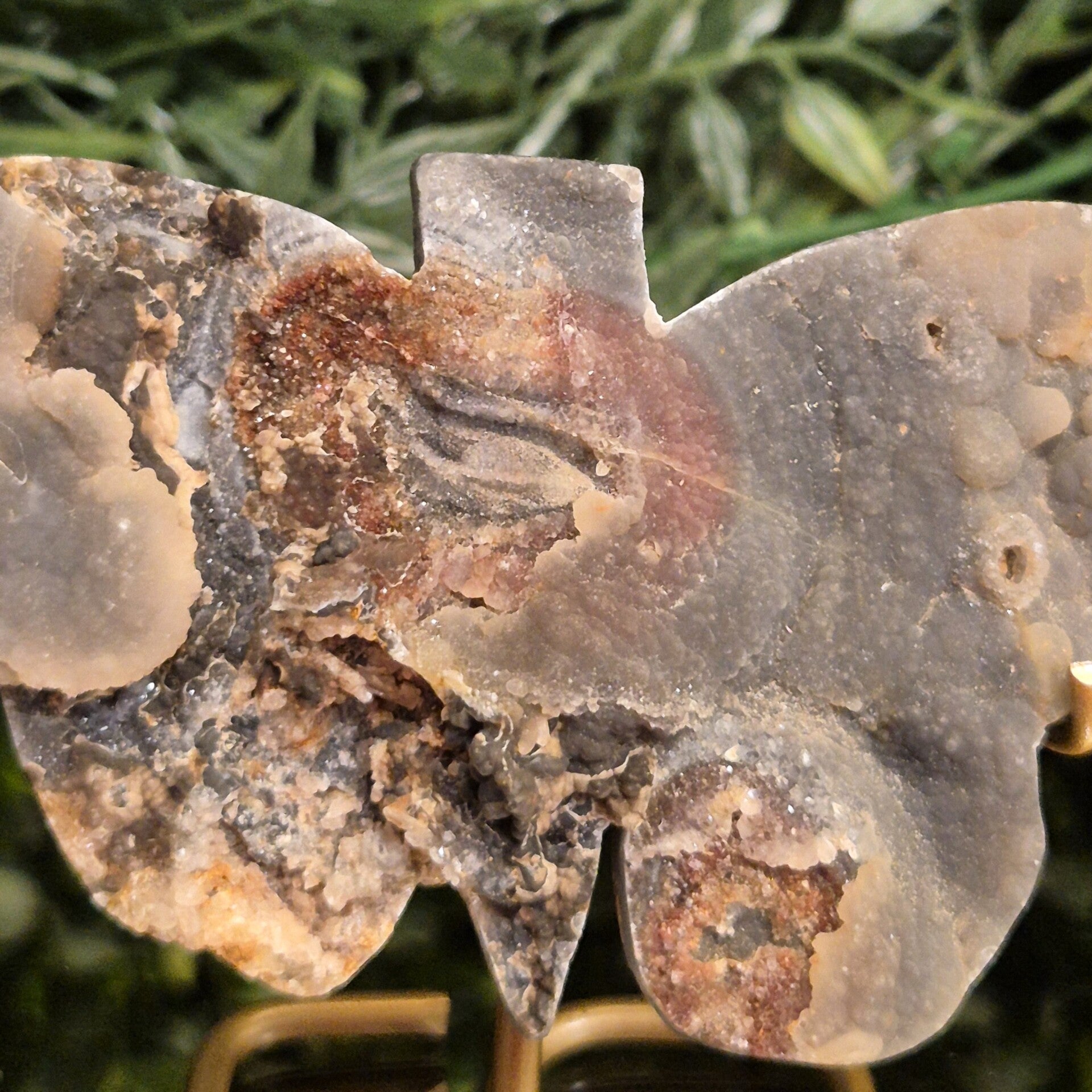 Prachtige robuuste Chalcedoon Vlinder op goudkleurige standaard.