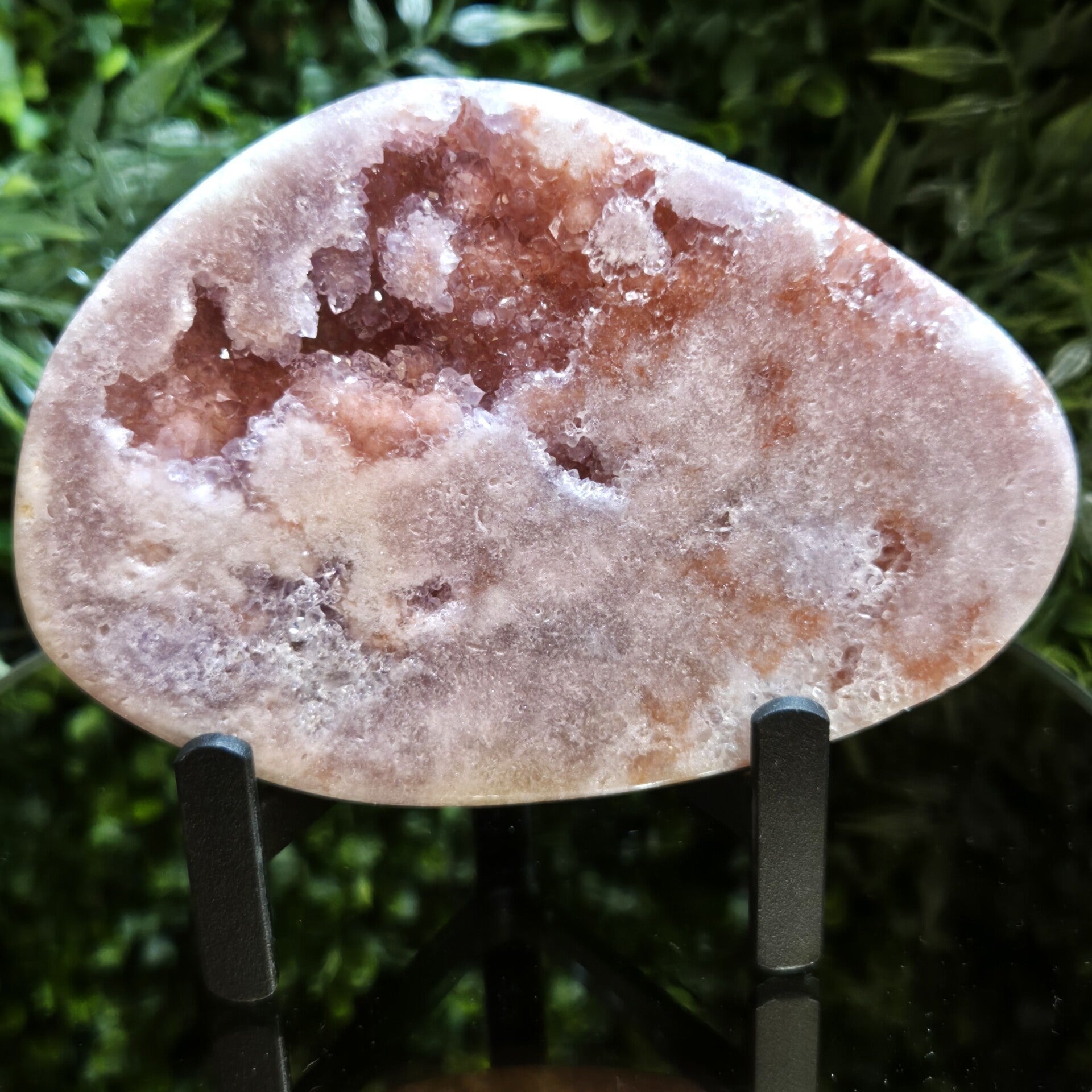 Deze mooie Roze Amethist slab is aan beide zijden gepolijst en heeft een mooie roze kleur en prachtige kristallen.