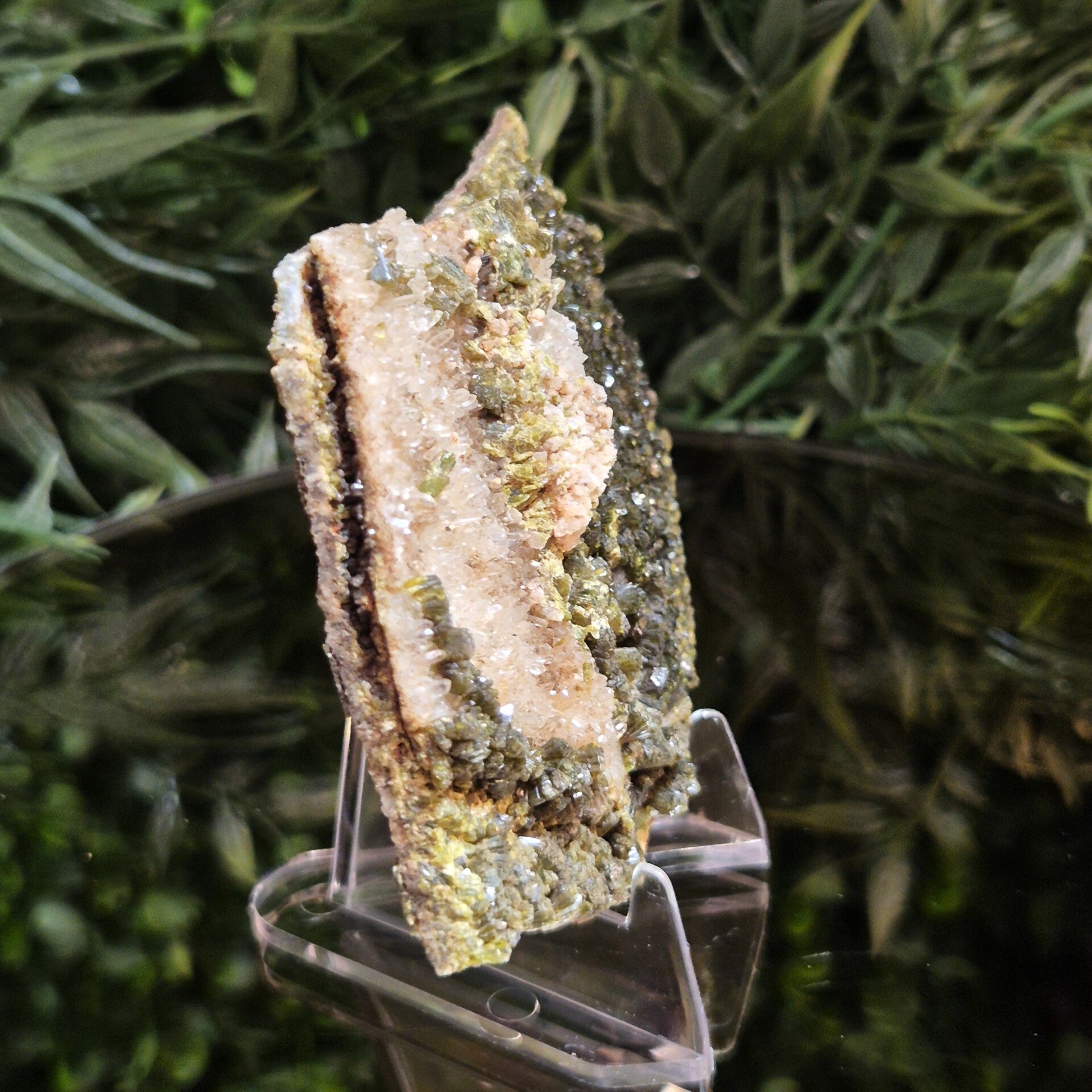 Een prachtig stuk ruwe epidoot met mooie diep groene kristallen.