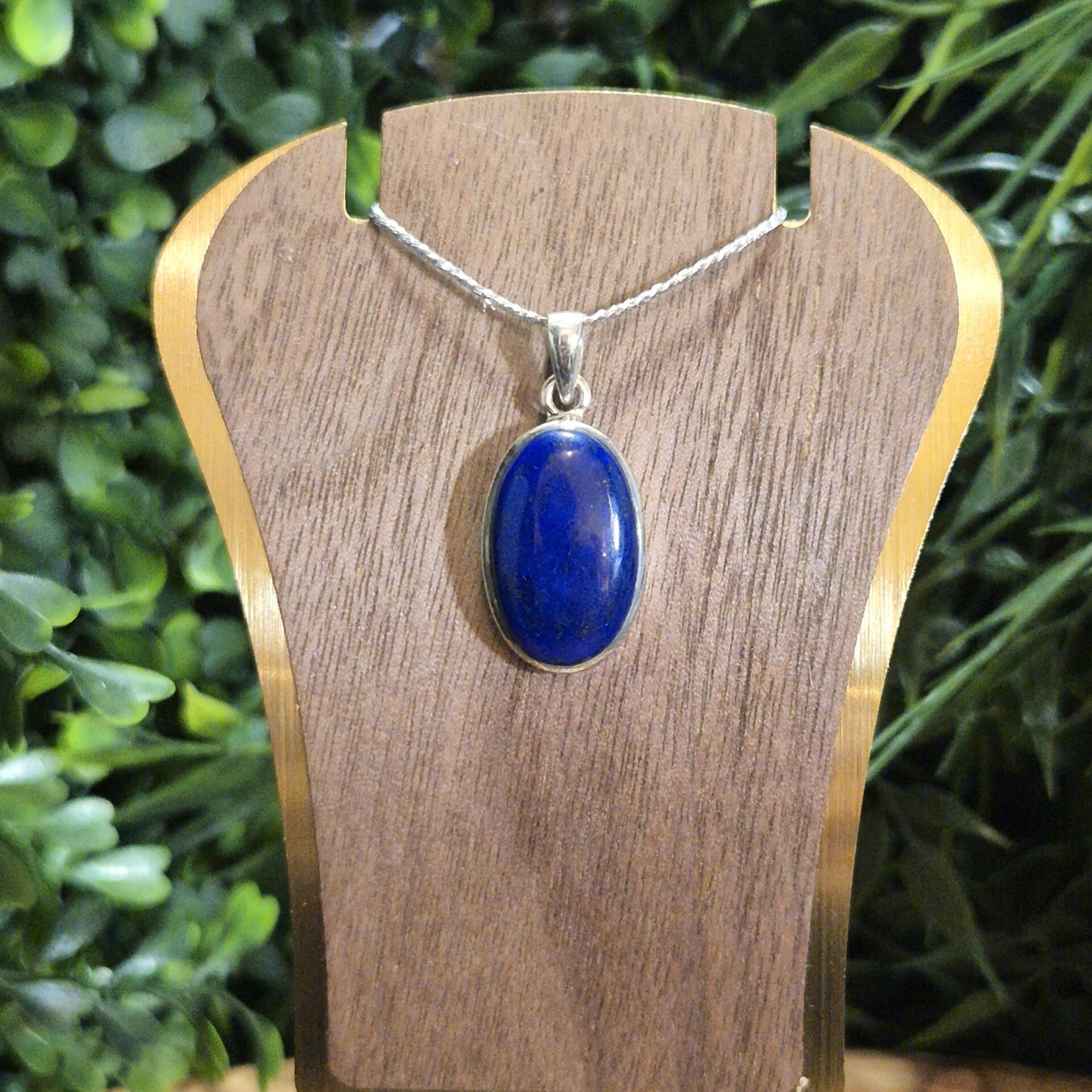 Mooie zilveren Lapis Lazuli hanger met een totale lengte van ongeveer 31 mm.