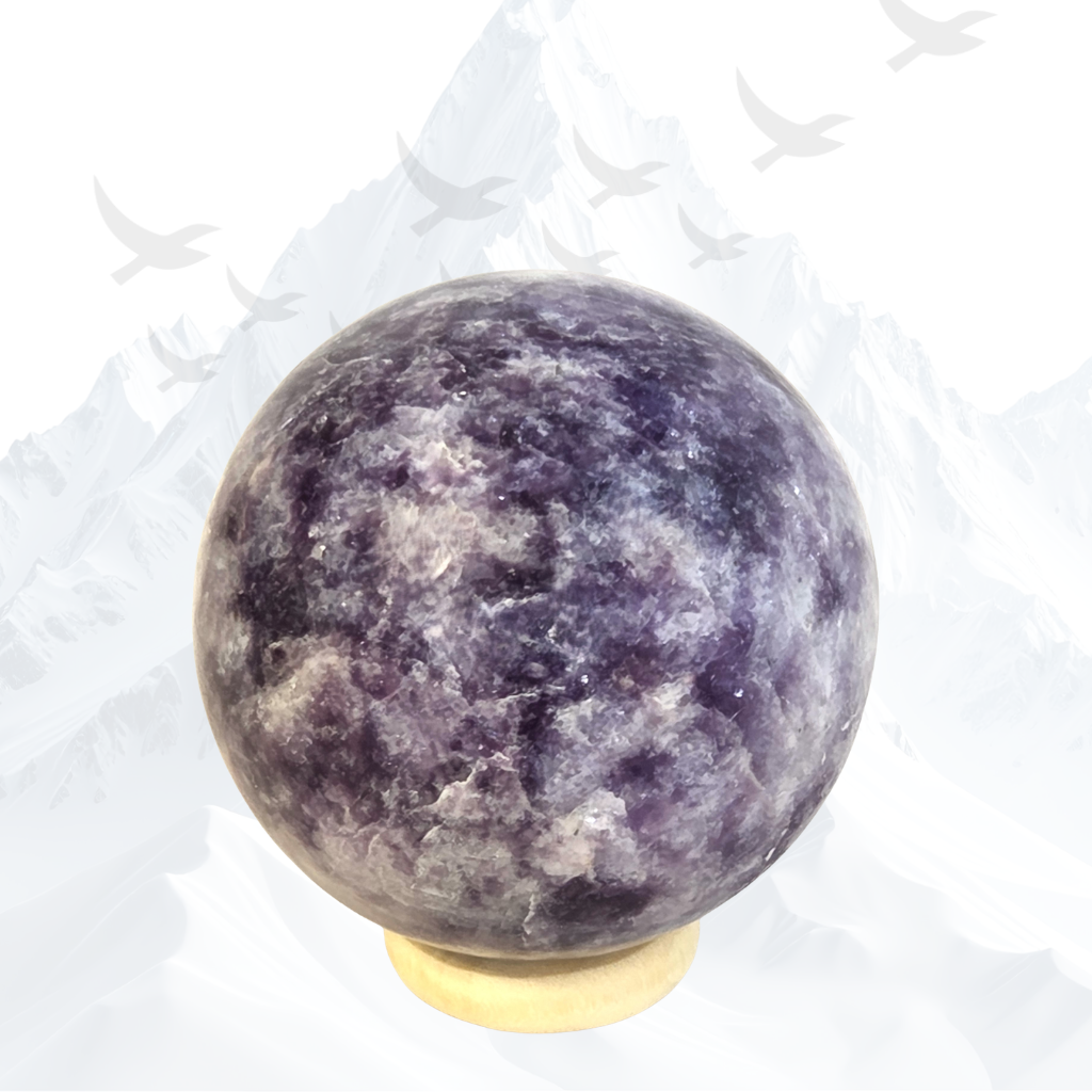 Prachtige lepidoliet bol met een afmeting van ca. 52 mm en een gewicht van ongeveer 205 gram.
